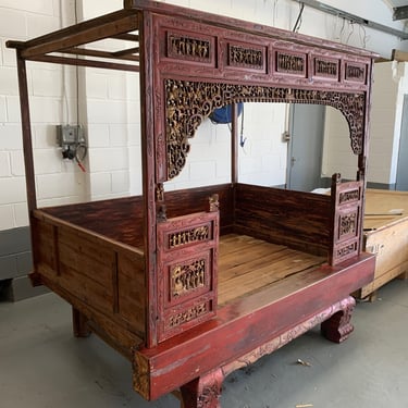 Easily assembled with 2 people, no screws or nails, all wood joints and wooden pins. There is some minor damage, but nothing major.